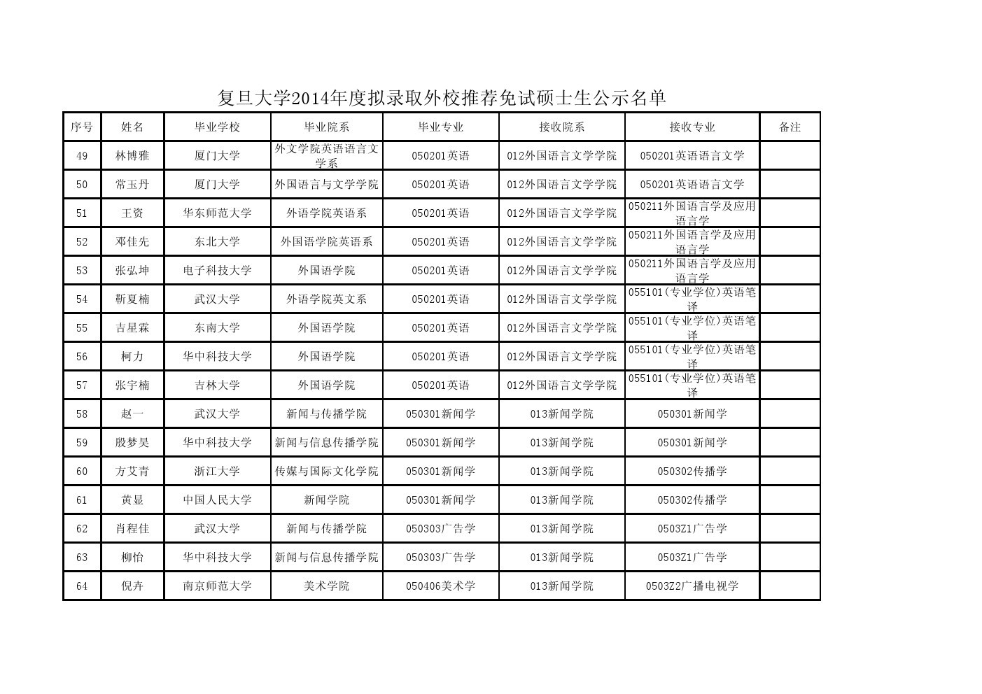 taptap手机官网登录2014年度拟招收推荐免试研究生和向外推荐免试研究生公示名单(硕士生)