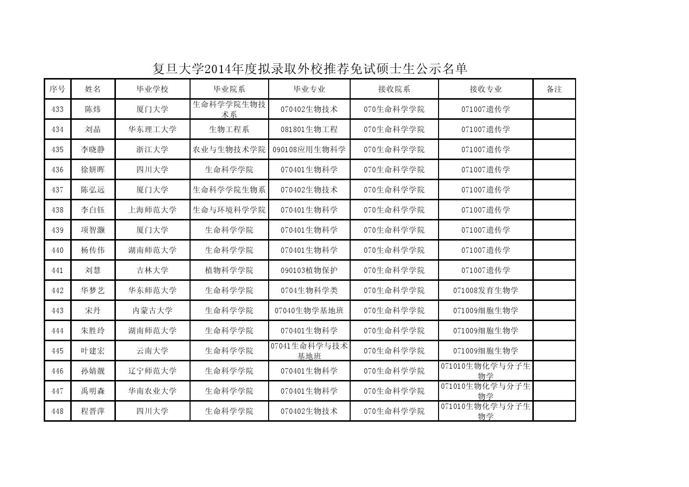 taptap手机官网登录2014年度拟招收推荐免试研究生和向外推荐免试研究生公示名单(硕士生)